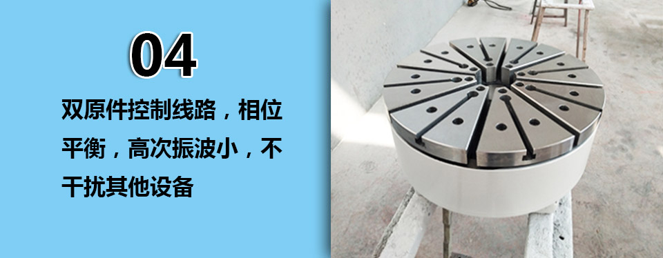 2、操作迅速充退磁循環(huán)快,充磁后工作中,工作磁力不受系統(tǒng)斷電等電源故障影響,退磁后臺面剩磁干凈,可實現(xiàn)快速應(yīng)力釋放。
