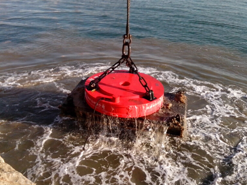 3、水中吸吊物料時(shí),請(qǐng)選用潛水型(潛水深度不大于100m)。潛水型起重電磁鐵其參數(shù) 與常溫型相同。如用戶需潛水型,請(qǐng)?jiān)谟嗀洉r(shí)說(shuō)明。