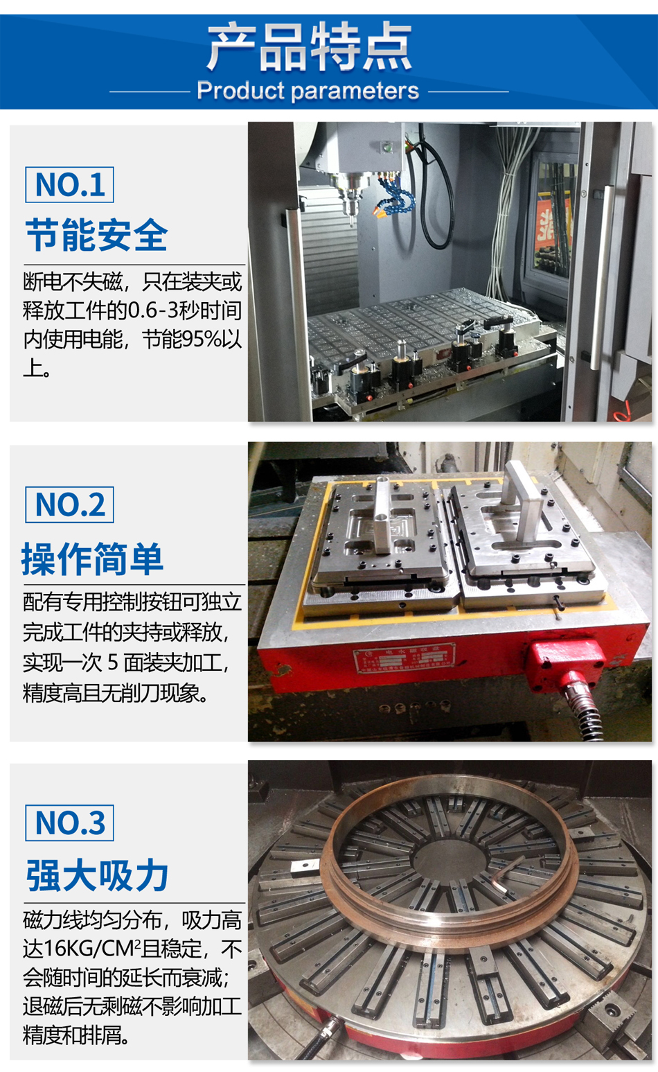 2、電永磁吸盤形成磁場(chǎng)吸力強(qiáng)大。